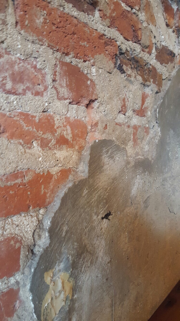 In this picture, the plaster was actually removed from the majority of the brick surface. At the turn of the last century, it was common to cover the wide and sloppily placed/grouted interior brick with plaster.