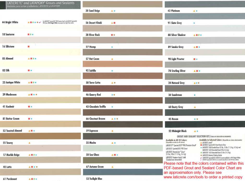 Grout color selection guideGary BarnhartJun 15, 20141 min readWe generally use three grout manufacturers: Laticrete, CBP, MapeiColor selection cards of each product line are at the following links. (Warning: the color may look different depending on monitor calibration.)